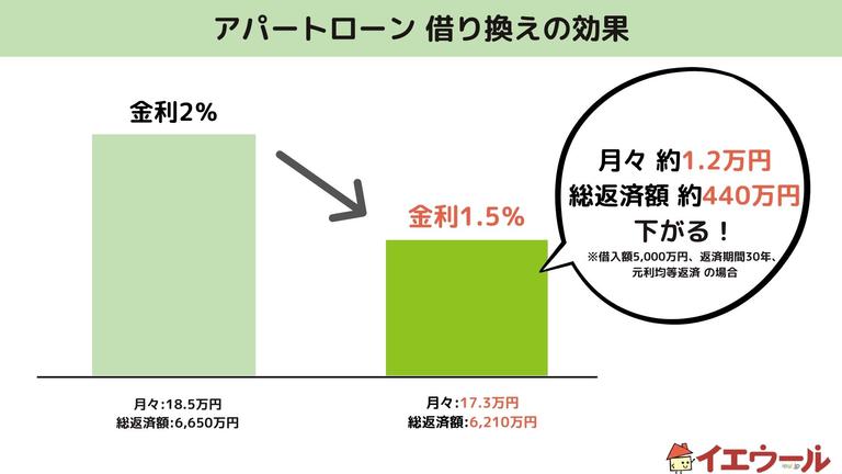 - アパートの借り換えは「返済総額を減らす」メリットがある