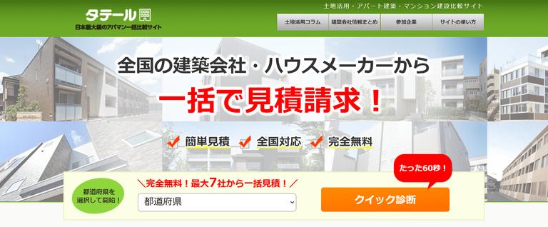 タテールは、株式会社キャリアップが運営する土地活用プラン比較サイトです。