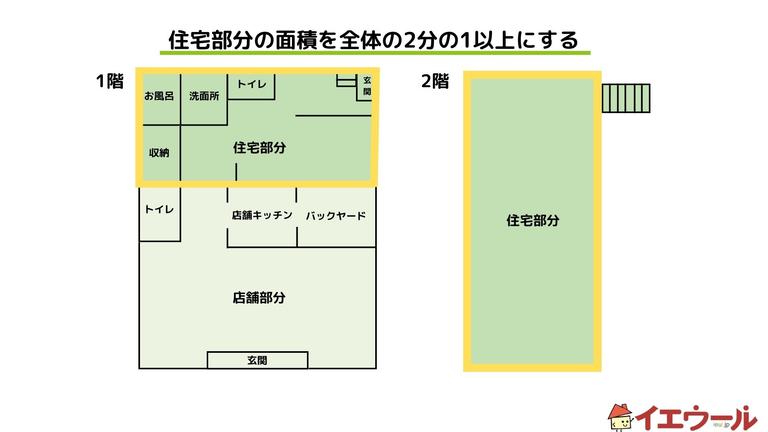 ・店舗(事務所)部分を除く居住部分の床面積が、建物全体の床面積の2分の1以上あること