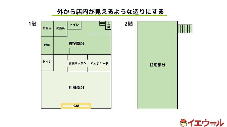 一階に店舗を配置しても、外から中が見えなければ何のお店なのか分かりませんし、お客様が入りづらいです。