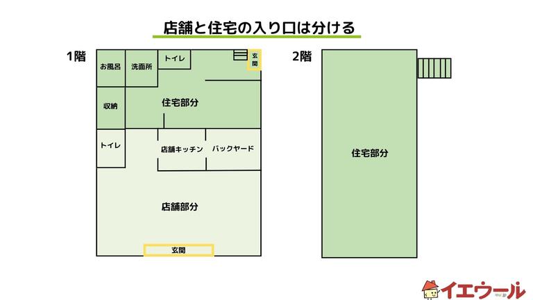 店舗と住宅の入り口が同じ場合、どうしても生活感が出てしまいますし、互いに気を遣う場面が出てくるでしょう。