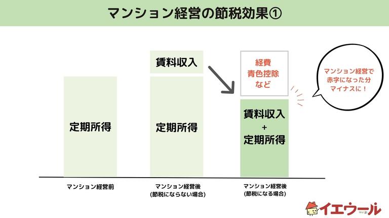 マンション経営の不動産所得と定期所得を合わせて、合計の所得額が小さくなるケースであれば、所得税を節税することができます。