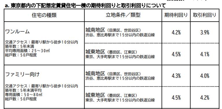 アパート経営の東京都内の表面利回りの相場は、ワンルームタイプ・ファミリータイプで分けた場合以下のようになります。