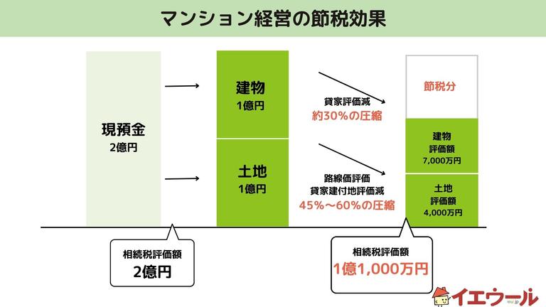マンションを経営をすることで、固定資産税の評価額を最大1/6に、相続税の評価額を半分ほどに軽減することができ、これはさまざまな土地活用方法の中で、トップレベルに節税効果が高いです。