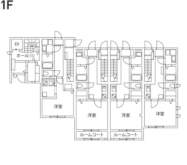 こちらの間取りの基本は横割りとなっていますが、1階と2階の賃貸部分はそれぞれが階段でつながった物件となっています。そのため、3階が自宅部分、1階・2階の賃貸部分が4戸という配置です。