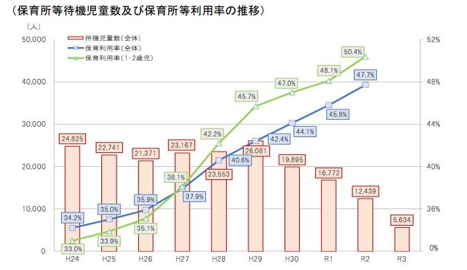 令和3年現在までの待機児童数の推移を見てみると、減少傾向にあることがわかります。これは、保育園設立に対する新制度による公的な補助が始まり、従来よりも格段に経営しやすくなっているためです。