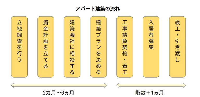 アパートの建築は、以下の流れで進められます。