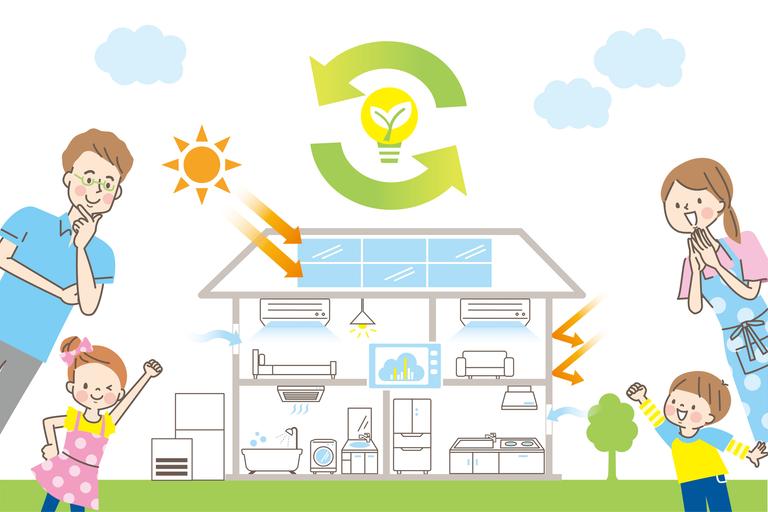 ZEH(ゼッチ)は「ネット・ゼロ・エネルギー・ハウス」の略称です。ZEHは最新の設備システムを導入しており、創エネと省エネを実現することができます。ZEHは省エネをしながら再生可能エネルギーによって創エネし、年間の一次エネルギーの消費量を0にすることを目指しています。