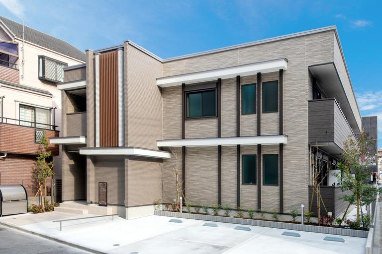 オーナー様のご希望で、落ち着いた雰囲気にこだわり、残した園芸用地は入居者の借景になるように配慮。敷地内にはポケットパークや、バーベキューテラスを設けるなど、入居者が楽しく過ごせる住宅が完成しました。