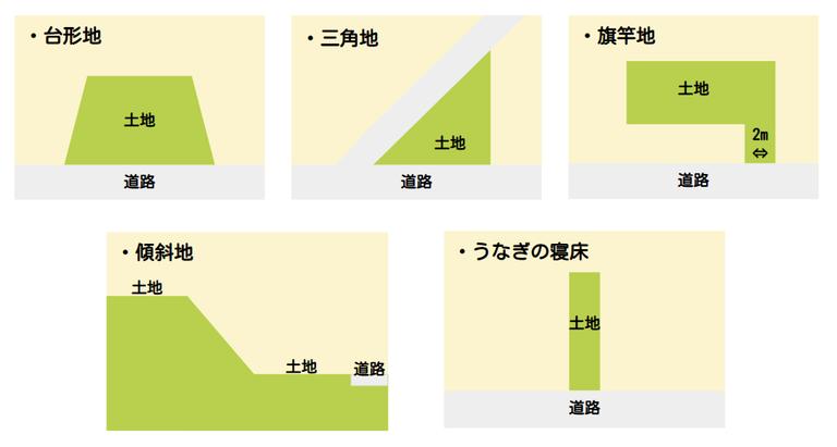 具体的には、自分の土地が以下の5つに分類される立地のどれに該当するかを考えると良いでしょう。