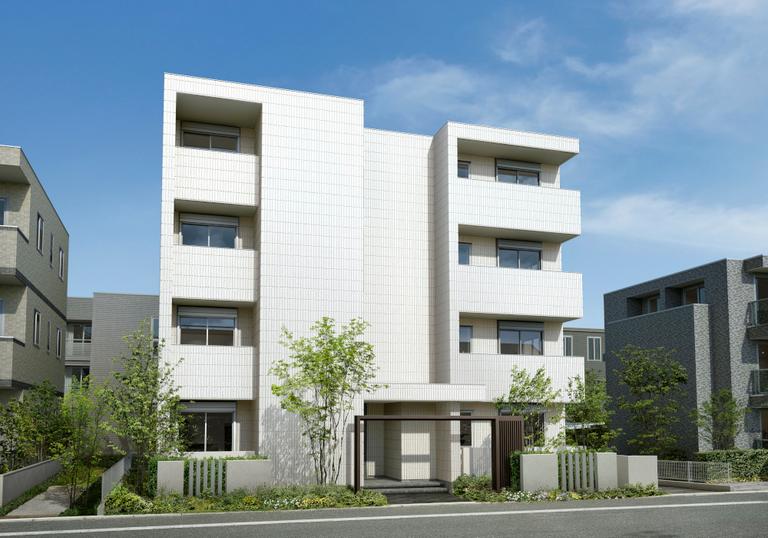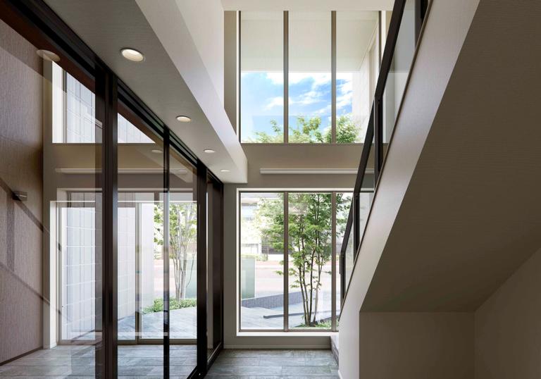 ミサワホームでは設計事務所と協働して、外観では縦のラインを意識したガラスの意匠がつながる美しいデザインを実現。室内はシングルやDINKs向けの1LDKとし、傷や汚れに強い床材をはじめ、ペットの足洗い場も設置するなど、近隣物件にない「ペット対応型」としました。