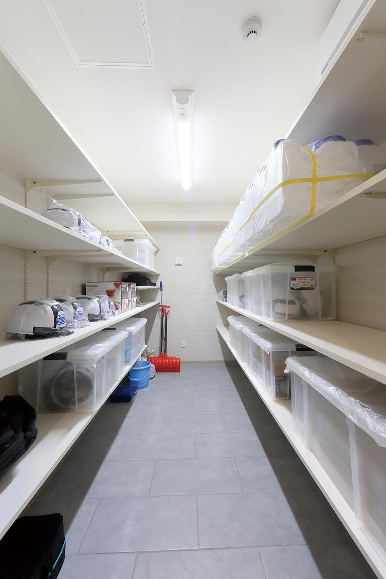 ゆったりとした1LDKを中心に、女性視点の設備や内装を採用。働く女性入居者をメインターゲットに、暮らしやすさを考えた賃貸マンション。もしもの時にも役立つよう充電設備や水、ヘルメット等を備蓄した防災庫も設置しています。