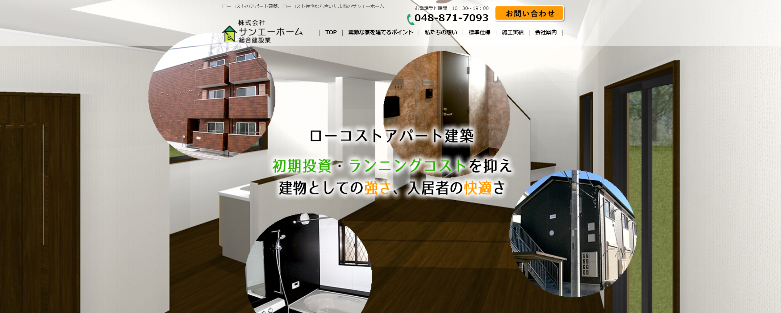 株式会社サンエーホームは、建物のとしての強さと入居者の快適さを追及したローコストアパートを提供しています。