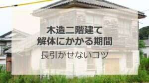 費用の相場と工事の期間の目安としては、前述した通り、30坪の木造住宅の解体費用の相場は90万円~150万円で、工事にかかる期間は10日~2週間となります。