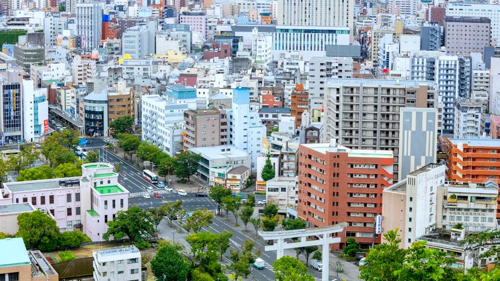 鹿児島湾の向かいに桜島を臨む鹿児島市は、気候が温暖で温泉が多く、移住地としても人気があります。市の中心地にはビルやマンションが立ち並んでいますが、市街地を離れると山林や農地が広がります。