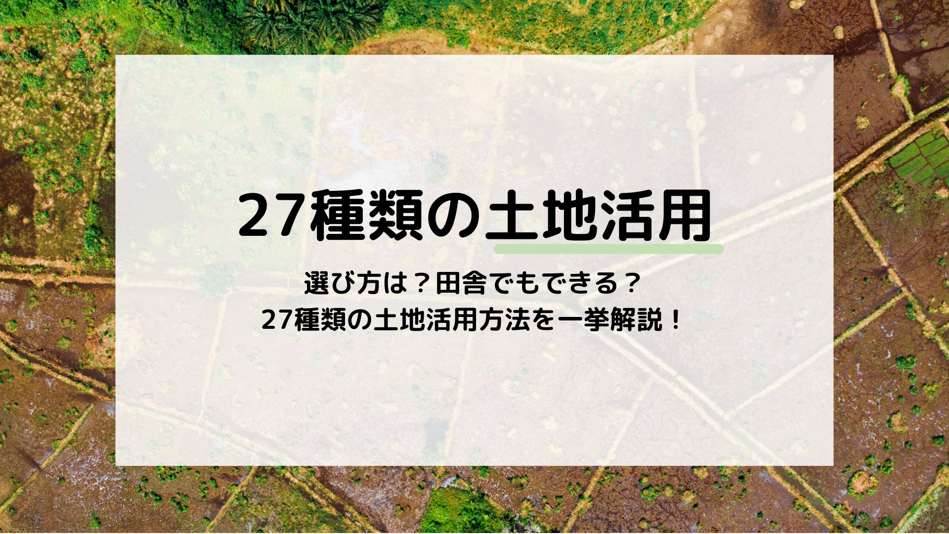 土地活用には、様々な方法があるため、お持ちの土地に適した活用方法を選ぶことが成功への近道といえます。そこでこの記事では、王道から面白いアイデアまで27種類の土地活用方法を解説します。