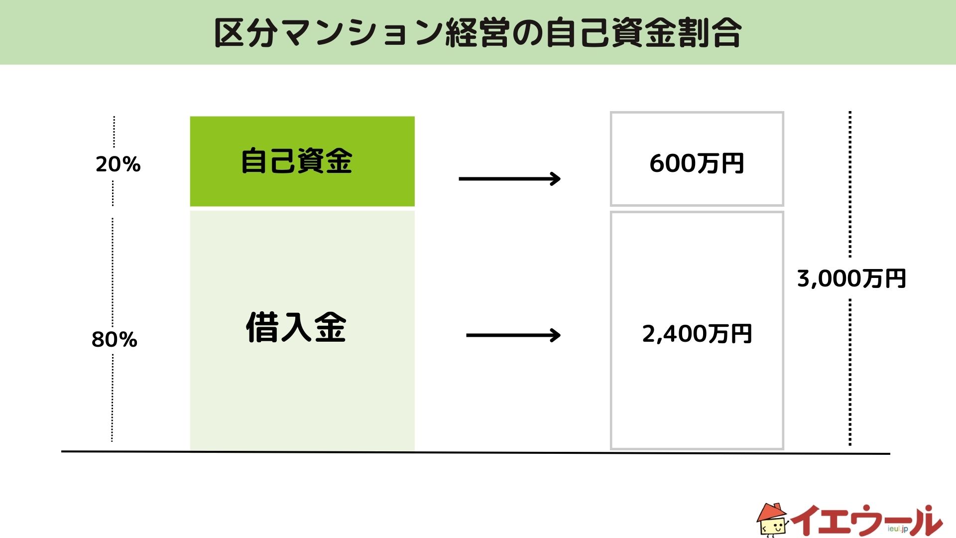 仮に3,000万円のワンルームマンションを購入する場合、600万円の自己資金を用意する必要があります。
