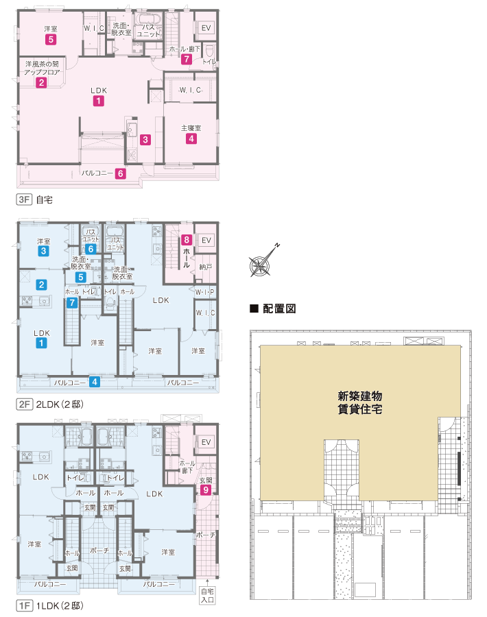 1階・2階には、1LDKと2LDKをそれぞれ2戸ずつ配置し、3階は自宅部分となっています。
